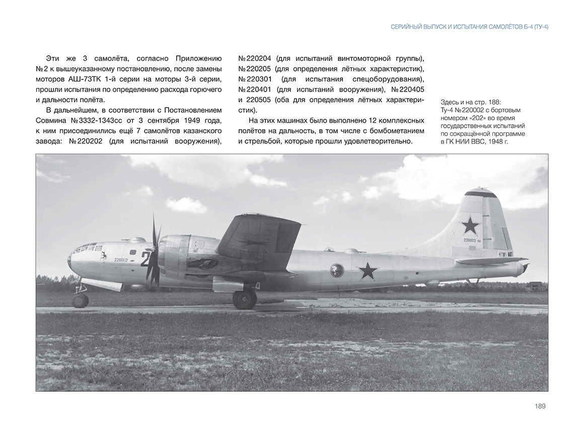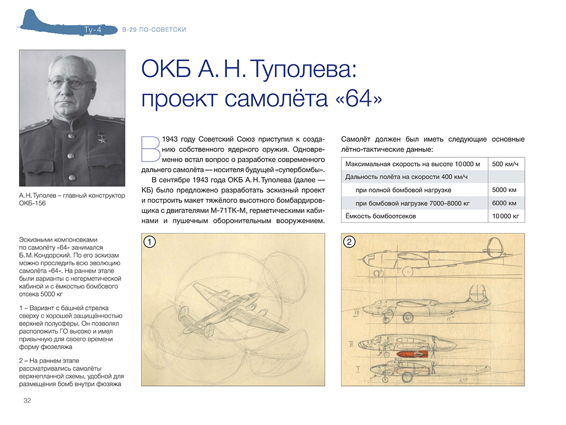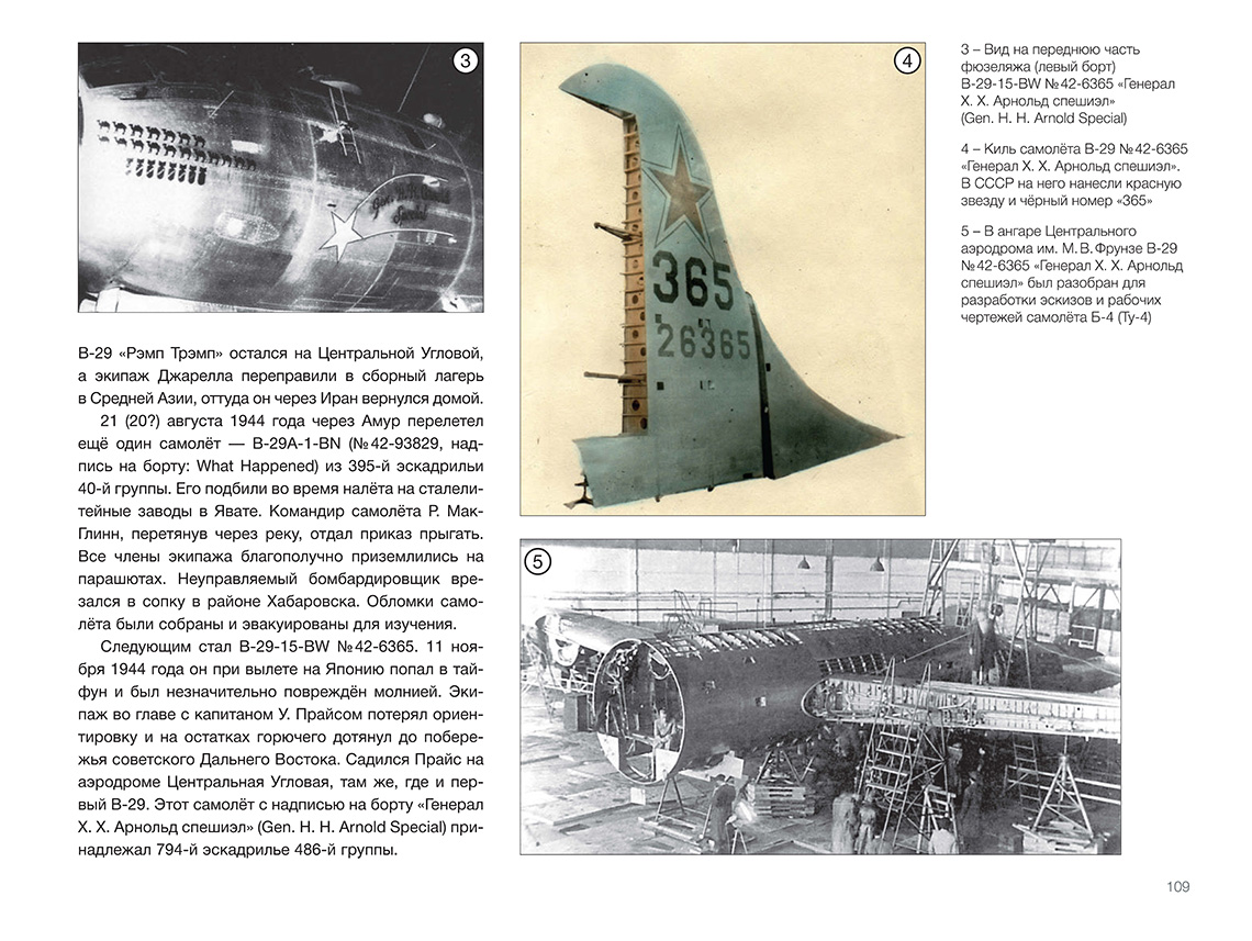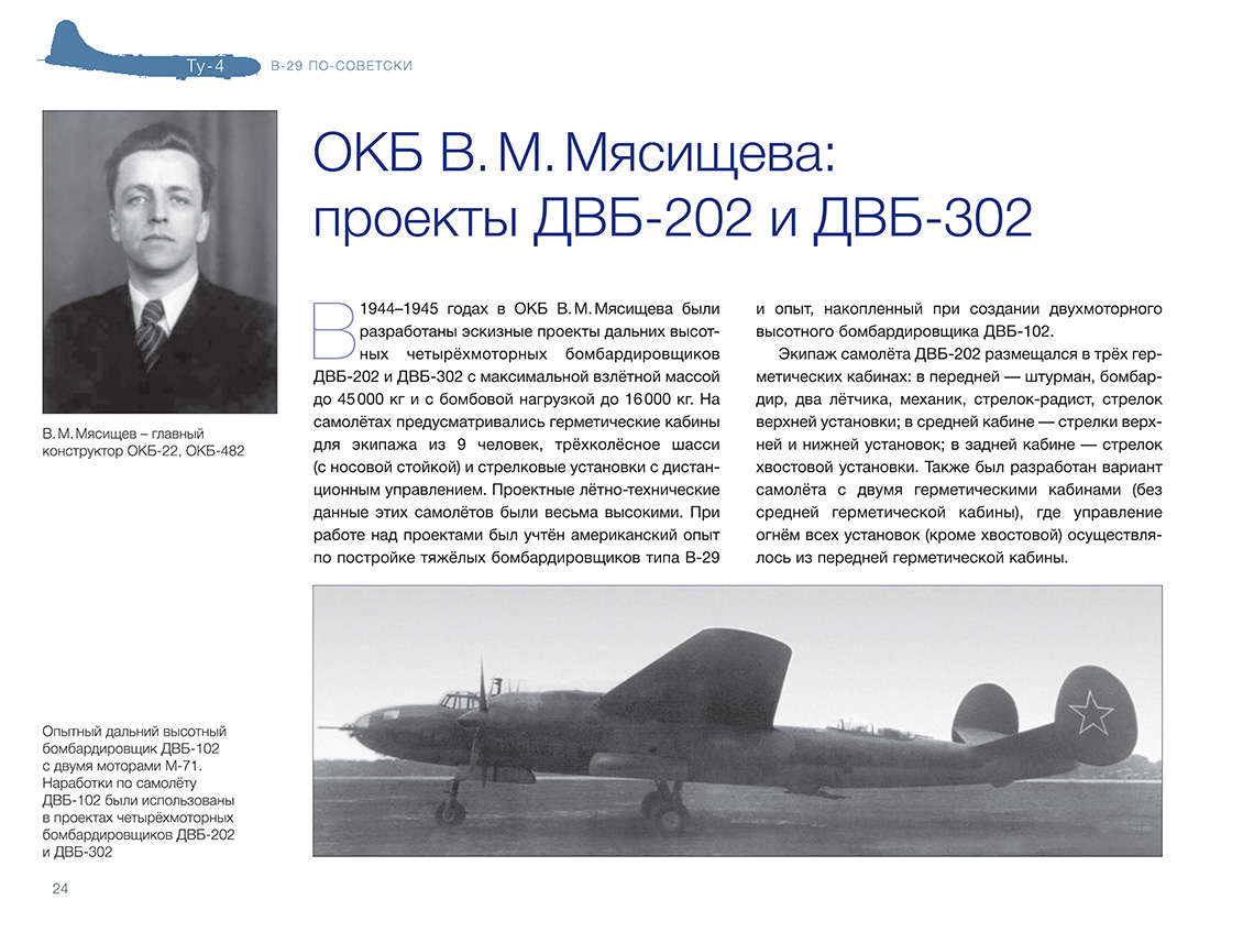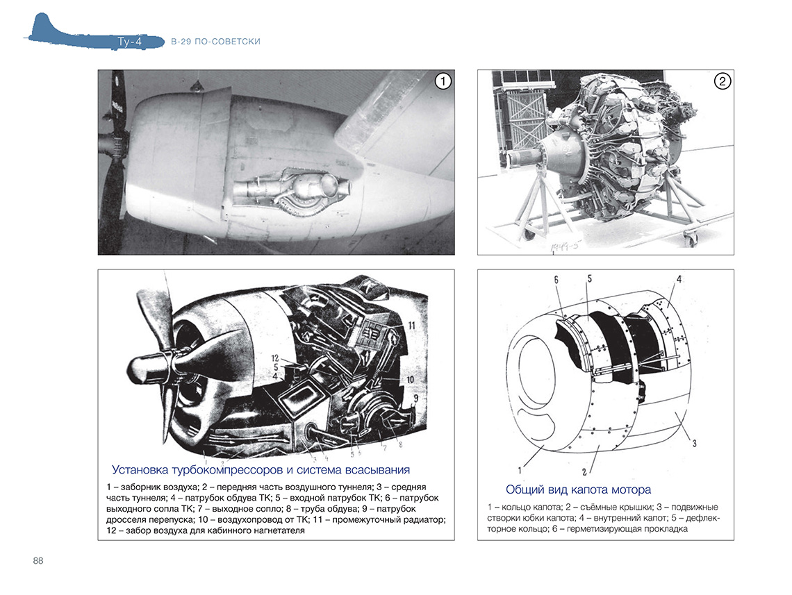 В 1945 году руководство СССР, обеспокоенное состоянием дел по созданию авиационного носителя ядерного оружия, приняло решение развернуть серийное производство Б-4 (будущего Ту-4) — копии американского тяжё-лого бомбардировщика В-29 на основе четырёх интернированных на Дальнем Востоке машин. ОКБ А. Н. Туполева сосредоточило все силы на этой первоочередной работе. Копирование В-29 неизбежно вело к некоторому отставанию от новейших образцов западной техники. Но несмотря на это, почти 1300 серийных машин, в числе которых были самолёты — носители первых советских атомных бомб, стали огромной силой, способной сдерживать амбиции потенциального противника. К тому же освоение производства Ту-4, в котором были применены многие устройства, материалы и технологии, отсутствовавшие в СССР, позволило в конечном итоге создать первое поколение реактивных дальних бомбардировщиков. Введение «Ту-4. В-29 по-советски» ISBN 978-5-60521-661-2 Книга подготовлена издательством ИИГ «Полигон-пресс»Содержание